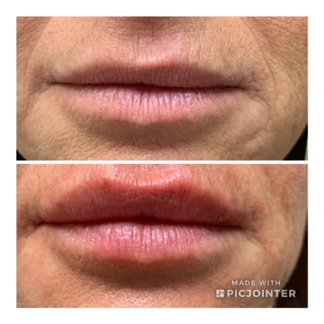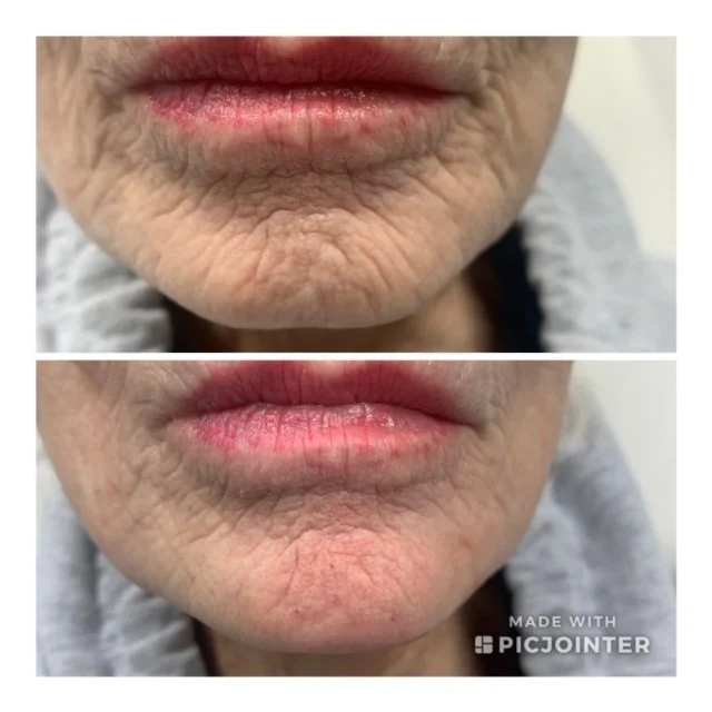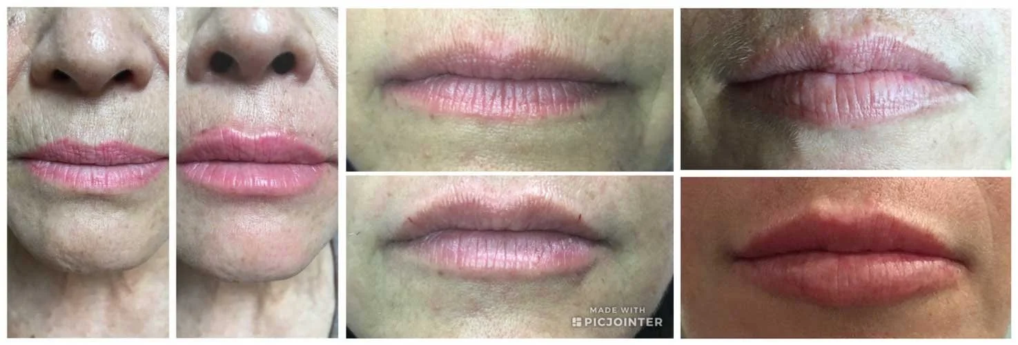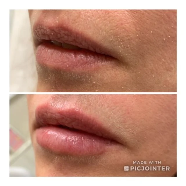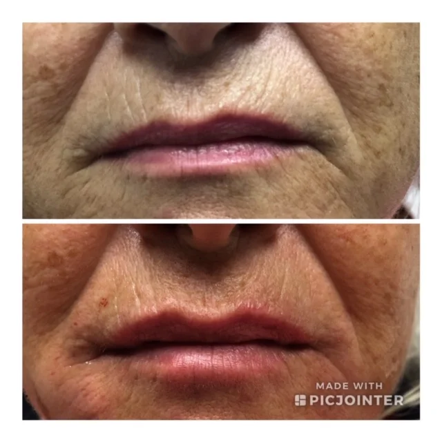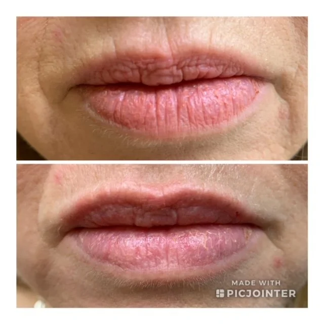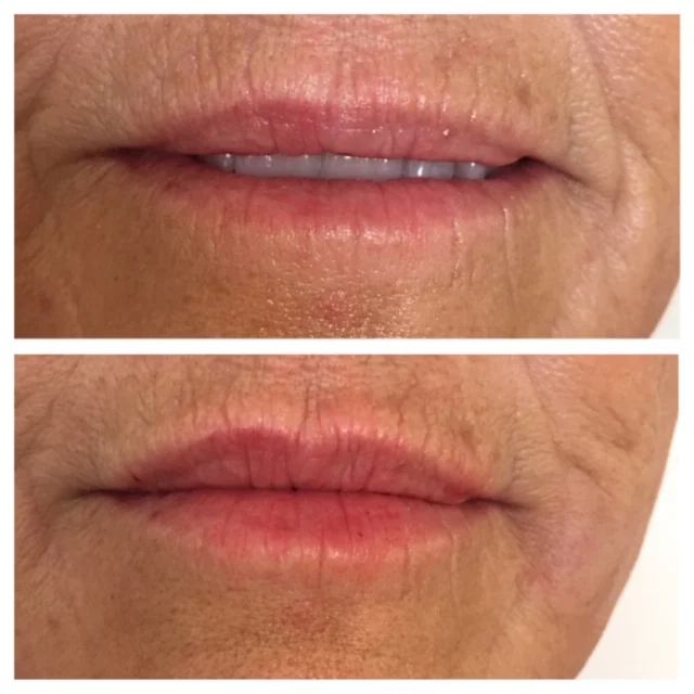 Before and Immediately after lip injection and slight lift of mouth corners.
